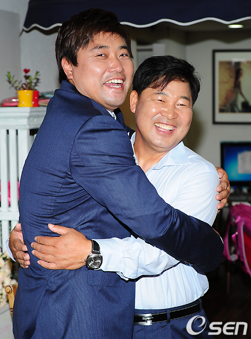 양준혁과 이만수 감독이 포옹을 하고 있다./rumi@osen.co.kr
