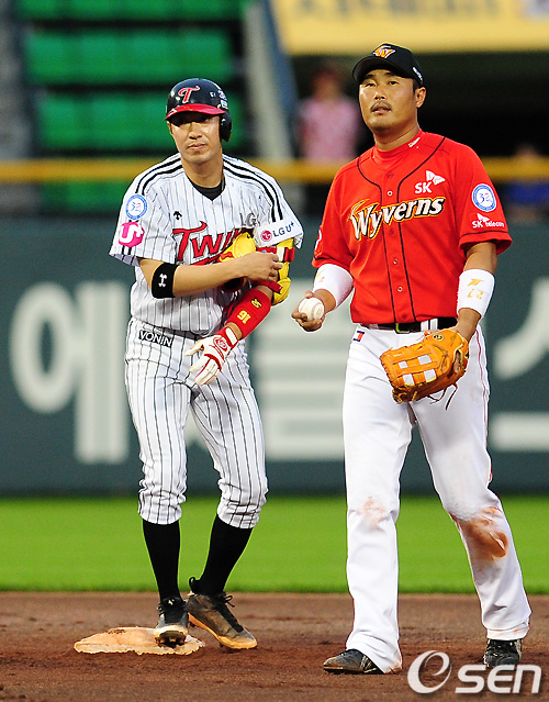 정성훈은 12일 잠실구장에서 열린 SK와의 경기에서 4회 말 선두타자로 나서 우중간 2루타를 때린 뒤 대주자 윤진호(25)로 교체됐다.