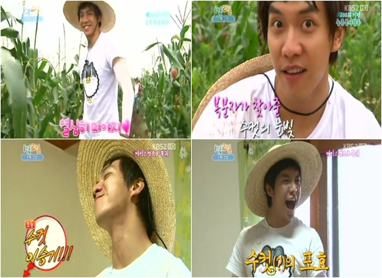 '1박2일' 속 이승기는 이제 더이상 순한 막내가 아니다. 귀엽고 수줍고 착한 막내보다는 '큰 형님' 강호동을 요리할 수도 있는(?) 베짱까지 지녔다. 예컨대 강호동이 (배타고 1시간 거리의 관매도로 떠나며) "그 정도는 엎어지면 코닿을 거리네요"하면 "그렇게 많이 엎어지시게요?"라는 멘트로 능청스럽게 응수한다. 또 최근 방송분에서는 전북 고창에서 복분자 엑기스를 9잔이나 마시고는 "남자한테 정말 좋은데, 뭐라 설명할 길이 없네"라는 멘트로 천연덕스럽게 CF 패러디를 한다. 주위에서 '수컷의 향기'가 난다고 거들자 팔 근육을 드러내며 음흉한(?) 눈빛도 쏜다. 능글맞아졌다.