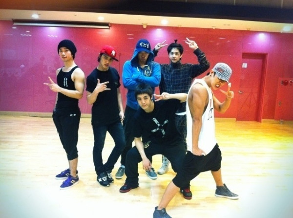 사진 속에는 엠블랙 멤버들이 근육을 과시하며 멋있는 포즈를 취하고 있고, 그 가운데 비가 팔짱을 끼고 서 있다. 비가 쓴 모자에 '비느님'이라는 글귀가 눈에 띈다.