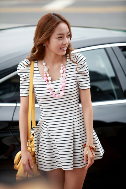 특히 구하라는 다소 밋밋할 수 있는 미니 원피스에 상큼한 목걸이와 빈티지한 팔찌를 착용, 포인트를 줬다. 옐로우 빛으로 화사함을 돋보이게 하는 숄더백은 여성스러움을 한층 더 부각시켜 구하라만의 스타일을 완성시켰다.