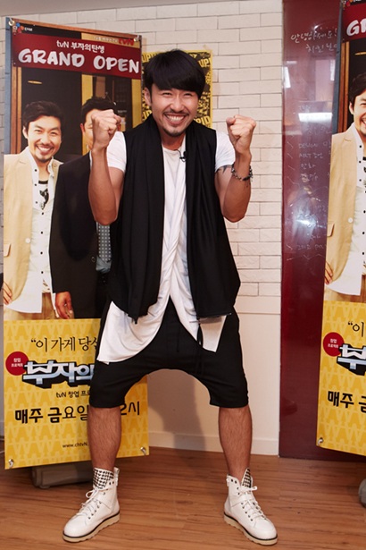 노홍철은 13일 오후 4시 마포구 상수동 인근 치킨집('부자의 탄생' 1호 홍대점)에서 열린 '부자의 탄생' 기자간담회에 참석했다.
