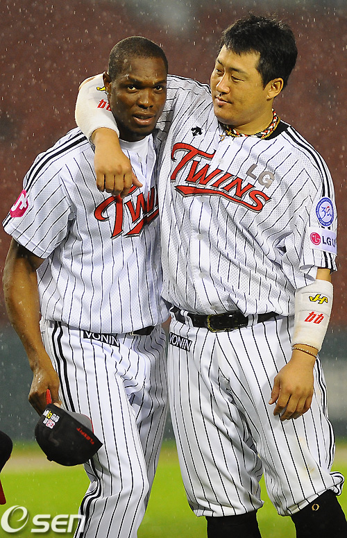 노게임 선언되자 LG 조인성과 리즈가 장난치며 더그아웃으로 들어가고 있다 / soul1014@osen.co.kr