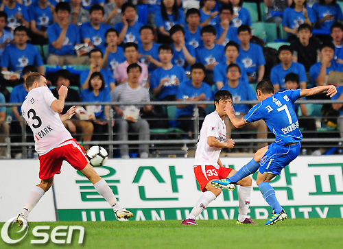 지속적인 공격을 펼친 울산은 전반 38분 선제골을 뽑아냈다. 페널티 아크 오른쪽에 있던 고창현은 설기현의 오른발로 내준 패스를 오른발 논스톱슛으로 연결해 선취골을 득점했다.