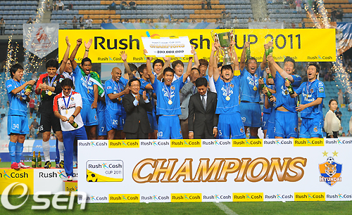 울산이 13일 울산문수경기장서 열린 러시앤캐시컵 2011 결승전서 고창현, 설기현, 강진욱의 골에 힘입어 양동현이 2골을 만회한 부산 아이파크에 3-2로 승리했다.