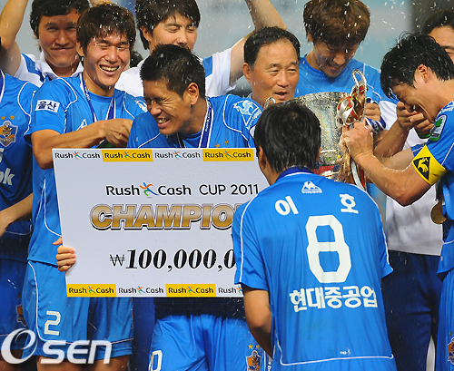 울산이 13일 울산문수경기장서 열린 러시앤캐시컵 2011 결승전서 고창현, 설기현, 강진욱의 골에 힘입어 양동현이 2골을 만회한 부산 아이파크에 3-2로 승리했다.