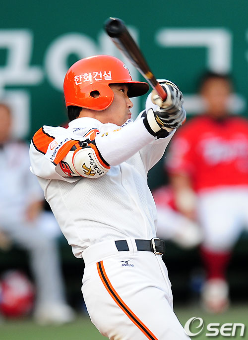 한화 최고참 강동우(36)는 8개 구단 최고령 1번타자다. 올해 팀 내 유일하게 79경기 전경기에 1번타자로 출장하고 있는 그는 타율 2할6푼2리 10홈런 32타점 8도루를 기록 중이다. 리그 전체 7위에 해당하는 3할3푼8리의 득점권 타율에서 나타나듯 찬스에 유달리 강한 면모를 보이며 한화의 공격을 이끌고 있다. 특히 7회 이후 3점차 이내 접전에서 가장 많은 23개의 안타를 터뜨리며 3할7푼7리라는 고타율을 치고 있다.