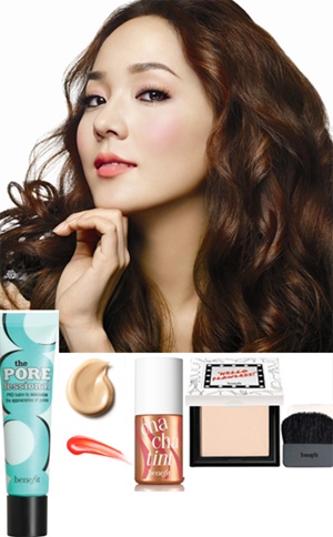 화보 속 ‘유진’처럼 상상 그 이상으로 길고 풍성한 속눈썹을 연출하기 위해서는 먼저, 기초 스킨케어로 피부를 촉촉하게 만든다. 프라이머(더 포어페셔널, 닥터 필굿)로 피부 결을 정돈하고, 모이스처 팩트(헬로 플로리스)로 잡티 없는 완벽한 피부 연출 후 산호 빛 블러셔(코랄리스타)를 양볼에 발라 얼굴에 생기를 준다.