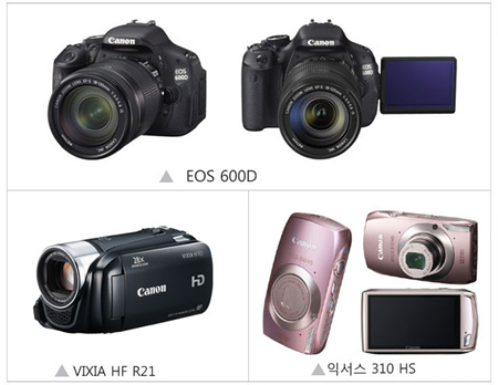 마지막으로, 캐논의 캠코더 8종도 이번 경품 이벤트에 포함된다. ‘HF G10, HF S30’ 기종 구매자는 씨게이트 1000G 외장하드, ‘HF M41, HF M40, HF R21, HF R20’ 기종 구매자에게는 씨게이트 500G 외장하드, ‘HF M400, HF R200’ 기종 구매자는 샌디스크의 16G 메모리카드를 받을 수 있다.