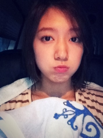 사진 속 박신혜는 차 안에서 젖은 몸을 수건으로 감싼 모습이다.