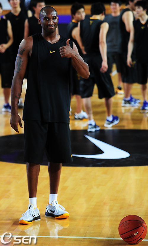 코비 브라이언트가 1대1 매치게임와 클리닉을 마친 후 최고라는 사인을 보내고 있다. / rumi@osen.co.kr