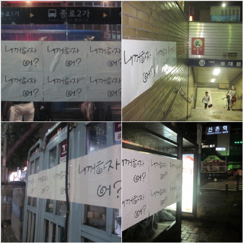 지난 14일 서울 홍대, 신촌, 종로 등 번화가 일대에는 흰색 바탕에 검은 글씨로 ‘내꺼하자 어?’라고 쓰여 있는 포스터가 붙어 눈길을 끌었다.