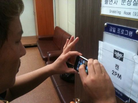 사진 속에는 이종원이 분장실에 쓰여진 대기자 명단 '2PM, 캔' 문구를 찍고 있는 모습이 담겨있다.
