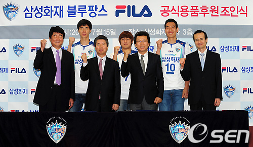 프로배구 삼성화재블루팡스와 휠라코리아의 2011~2012시즌 용품후원조인식이 15일 오전 서울 을지로 삼성화재본사에서 열렸다.