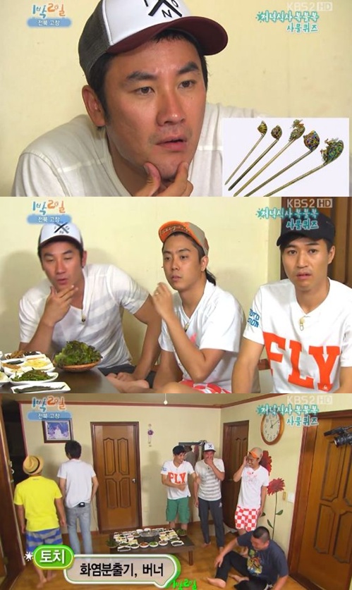 하지만 이승기, 이수근 등 다른 멤버들의 활약으로 첫 번째 대결서 우승, 풍천장어를 먹는 기쁨을 맛봤다. 또 이들 세 사람은 곧바로 이어진 음악 퀴즈에서도 승리를 따내 즐거운 저녁 식사를 계속 했다.