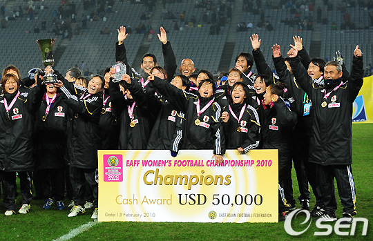 <사진> 2010년 동아시아선수권서 우승하고 환호하는 일본 여자대표팀.