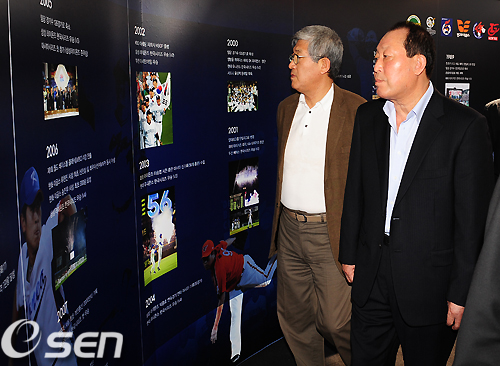 김인식 KBO 규칙위원장과 유남호 KBO경기운영위원이 전시장을 둘러보고 있다./ jpnews@osen.co.kr