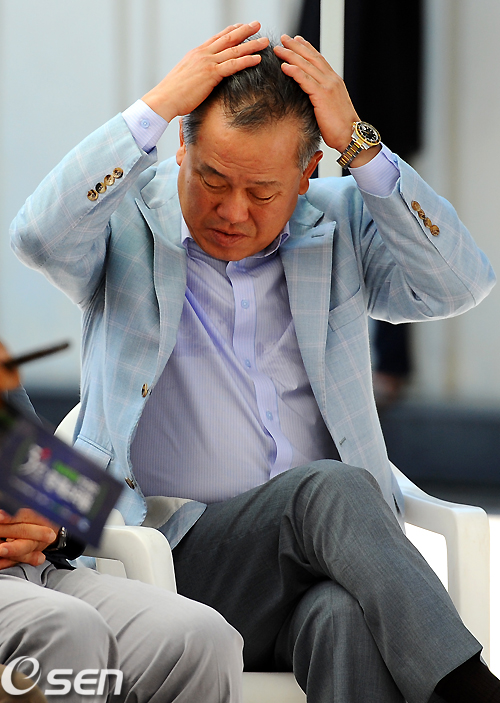 개막식에 참석한 롯데 양승호 감독이 땀을 닦고 있다./ jpnews@osen.co.kr