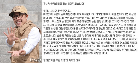 [OSEN=장창환 인턴기자] 방송인 하하가 안티팬들에 장문의 메시지를 전했다.