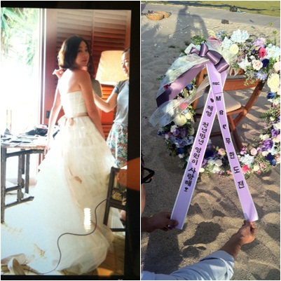 오중석은 앞서 트위터에 "웨딩 30분 전. 정말 예쁜 혜영"이라는 글과 이혜영의 웨딩드레스 자태를 공개했다.