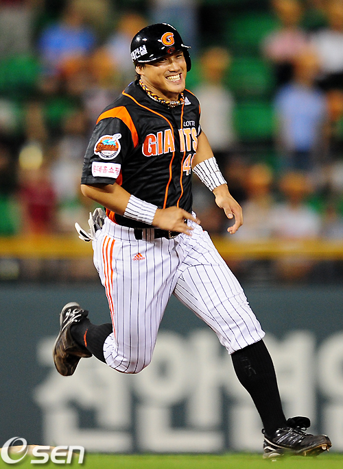 [OSEN=잠실,지형준기자] 20일 오후 잠실구장에서 열린 '2011 롯데카드 프로야구' 두산 베어스와 롯데 자이언츠의 경기, 6회초 1사 1,2루에서 롯데 조성환의 안타성 타구를 두산 김현수가 잡아내자 홍성흔이 급히 귀루하고 있다. 홍성흔은 1루에서 아웃. /jpnews@osen.co.kr