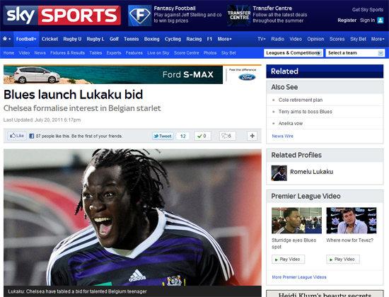 21일(이하 한국시간) 영국의 스포츠 전문 언론 '스카이스포츠'는 첼시가 안더레흐트의 스트라이커 로멜루 루카쿠의 영입을 준비하고 있다고 보도했다. 이에 따르면 첼시는 18세의 어린 스트라이커 루카쿠를 오래 전부터 지켜봐왔다.