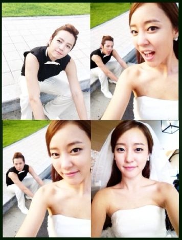 [OSEN=장창환 인턴기자] 걸그룹 레인보우의 멤버 고우리가 웨딩드레스를 입고 장근석 앞에서 사진을 찍어 눈길을 끌고 있다.
