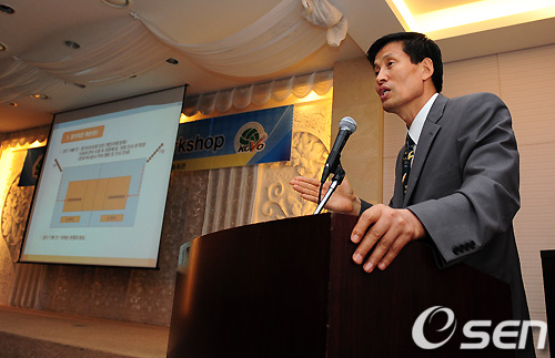 김건태 전임심판이 규칙보완 및 세계배구의 흐름을 주제로 강연을 하고 있다. / sunday@osen.co.kr