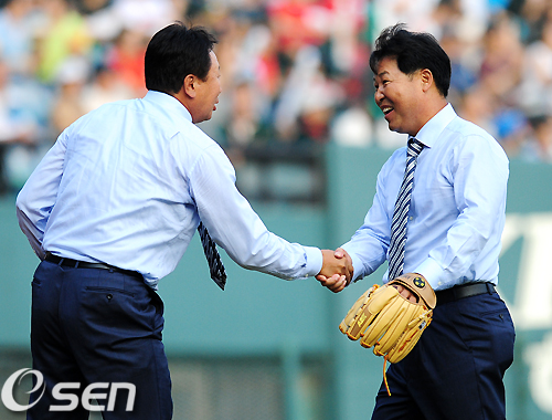 이 감독은 "국보급 투수 선동렬 감독과 배터리를 이뤄 시구를 했다는 것도 의미있고 기념될 만한 일이었다"면서 "늘 받아주는 것만 했는데 시구는 태어나서 처음한다"고 감격스러워했다.