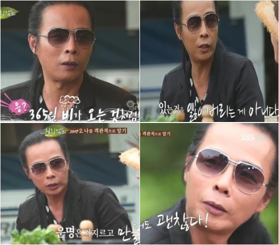 이어 "이건 붙임 가발이다. 꽁지는 요만하다"고 손가락 두 마디 가량임을 고백하며 스스로 '슬픈 사람'이라고 표현했다. 이다"고 말했다. "겉보기만 멋있고 들어가보면 아무것도 없다"고 덧붙였다.