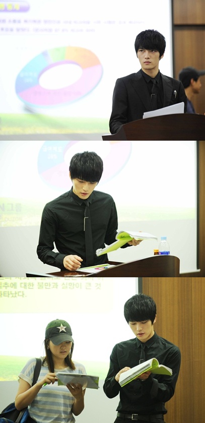 이어 손정현PD의 큐싸인이 들어가자 김재중은 극중 여러 중역들 출연진 앞에서 NG없이 이를 무난하게 연기했다. 그의 이런 발표솜씨에 제작진들또한 깜짝 놀랐다는 후문.