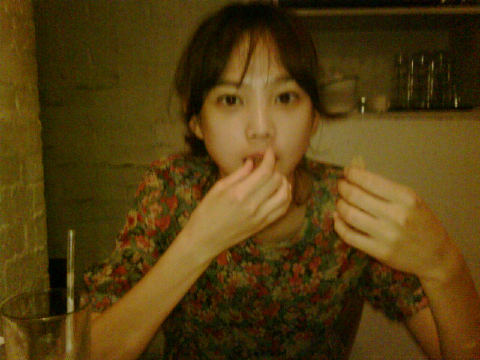 사진 속에 윤승아는 간식거리를 먹으며 카메라를 응시하고 있다. 특히 윤승아의 청순한 미모가 돋보인다.