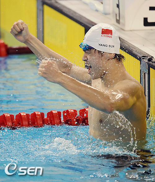 쑨양은 지난달 31일 중국 상하이의 오리엔탈 스포츠센터에서 페막된 2011 국제수영연맹(FINA) 세계수영선수권대회 마지막 날 남자 자유형 1500m 결승에서 14분34초14의 세계 신기록으로 금메달을 목에 걸었다.