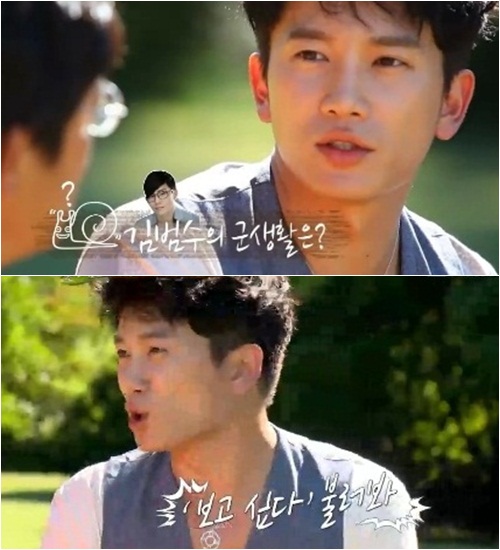 지성은 특히 군 생활을 열심히 한 연예인으로 김범수를 꼽으며 "첫날 저녁에 도착해 자리 배정해 주고 편하게 쉬라고 했다. 그런데 다음 날 아침 점호를 받으려고 할 때 상사가 김범수를 찾더니 '야 '보고싶다' 불러 봐'라고 하더라. 아침 6시에 '보고싶다'를 부르는 김범수가 그렇게 안타까울 수 없었다"고 당시 짠했던 마음을 털어놨다.