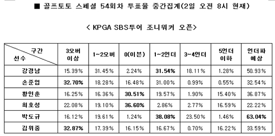 KPGA SBS투어 조니워커 오픈 1라운드 대상 스페셜 54회차 투표율 중간집계