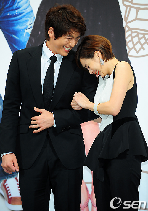 무대 위에서 커플 포토타임 중 류수영과 최정윤이 환하게 웃고 있다./ rumi@osen.co.kr