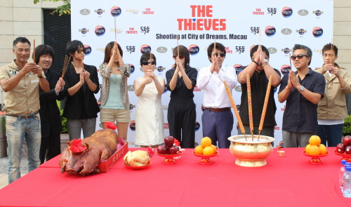 지난 7월 18일 마카오의 코타이 스트립에 위치한 대형 카지노 리조트 '시티 오브 드림즈(City of Dreams)'에서는 '도둑들'의 해외 무사 촬영을 기원하는 고사가 개최됐다. '시티 오브 드림즈'는 하드록 호텔, 크라운 타워 등의 고급 호텔과 대형 카지노, 쇼핑몰, 레스토랑, 극장 등을 소유한 아시아 최고의 종합 엔터테인먼트 리조트.