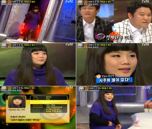 tvN 관계자는 3일 오전 OSEN과의 전화통화에서 "설씨는 룸메이트가 제보해서 출연하게 됐다"며 "얼마 전 '화성인 바이러스'에 출연한 누렁이녀와 비교해서는 양치도 매일 하는 자신이 훨씬 깨끗하다고 말했다"고 에피소드를 전했다.