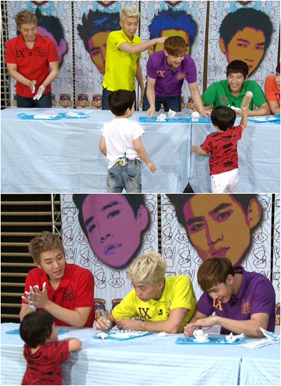 이날 멤버들은 처음 만난 삼형제와 친해지기 위해 장난감을 이용해 시선을 끄는가 하면 사진을 찍으며 온갖 노력을 했다.