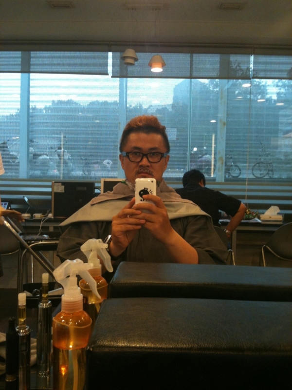 데프콘은 3일 오후 자신의 트위터에 "1단계 완료. 근데 해놓고 보니, 가스 배달 달인의 포스다! 그러나 아직 2단계 3단계가 남아있음. 레쓰고우 내 인생 첫 털염색"라는 글과 사진을 게재했다.