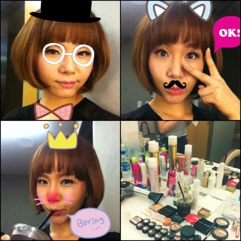 사진 속 임정희는 단발머리를 한 자신의 사진에 여러가지 귀여운 모양으로 꾸며낸 모습이다.