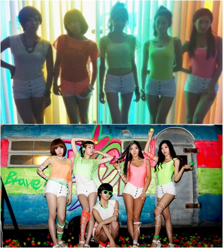 브레이브걸스는 5일 MTV '더쇼'에 출연해 타이트한 형광색 셔츠와 짧은 바지의 의상을 선보였다. 의상과 함께 볼륨감있는 멤버들의 몸매는 단시간에 화제가 돼 포털사이트의 메인을 장식했다.