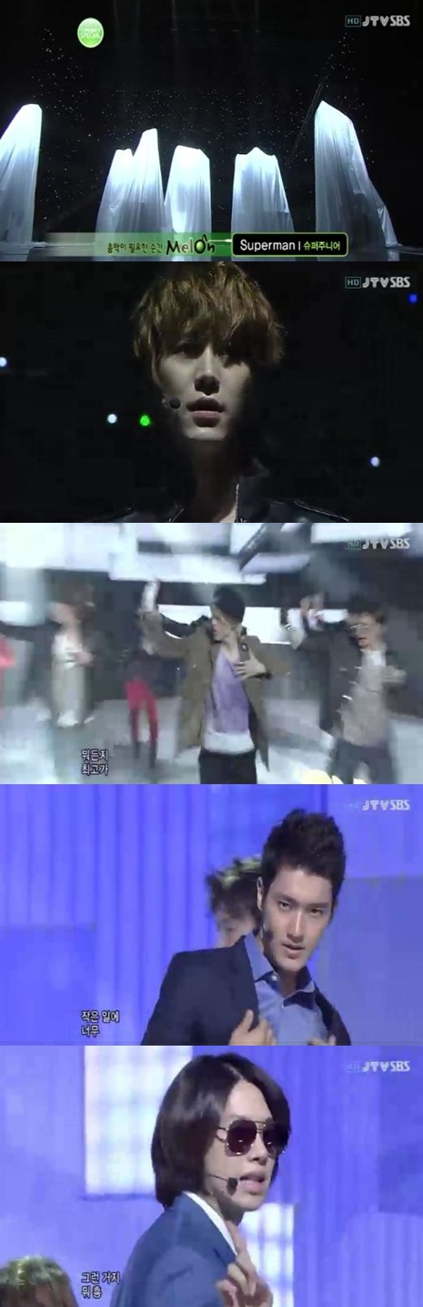 슈퍼주니어는 7일 방송된 SBS 가요 프로그램 ‘SBS 인기가요’에서 타이틀 곡 ‘미스터 심플(Mr. Simple)’과 5집 수록곡 ‘수퍼맨’ 등 총 2곡을 불렀다.