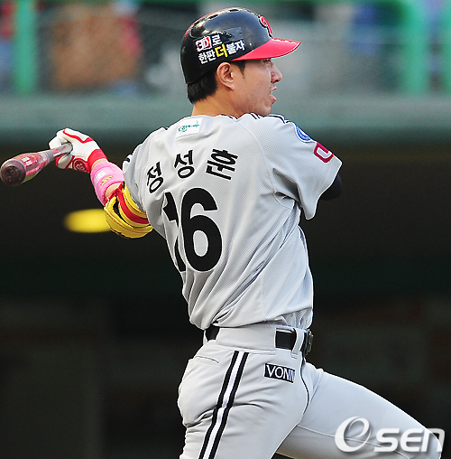 LG 정성훈(31)이 1회초 무사 1,2루에서 볼카운트 1-0에서 2구째 번트를 시도했다. 정성훈은 몸쪽으로 날아온 공에 황급히 뒤로 피하며 배트에 맞췄다. 그러나 배트에 맞은 번트 타구가 홈플레이트 바로 옆 라인이 그려지지 않은 곳에 떨어졌다.
