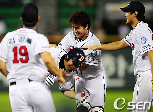 [OSEN=잠실,지형준기자] 두산 베어스가 9회말 김현수의 끝내기타를 앞세워 SK 와이번스에 역전승을 거두고 단독 6위로 올라섰다.