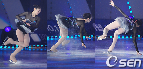 김연아가 빙판 위에서 오마주 투 코리아 무대를 선보이던 중 균형을 잃고 있다. / rumi@osen.co.kr