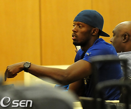 인천공항에서 예정된 게이트가 아닌 다른 게이트로 걸어 나온 우사인 볼트가 CIP 비지니스 센터에서 대구행 비행기를 기다리며 휴식을 취하고 있다. / rumi@osen.co.kr