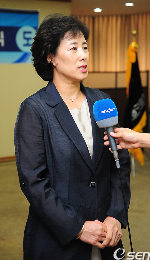 강현숙 여자농구 국가대표단장이 인터뷰를 하고 있다. / baik@osen.co.kr