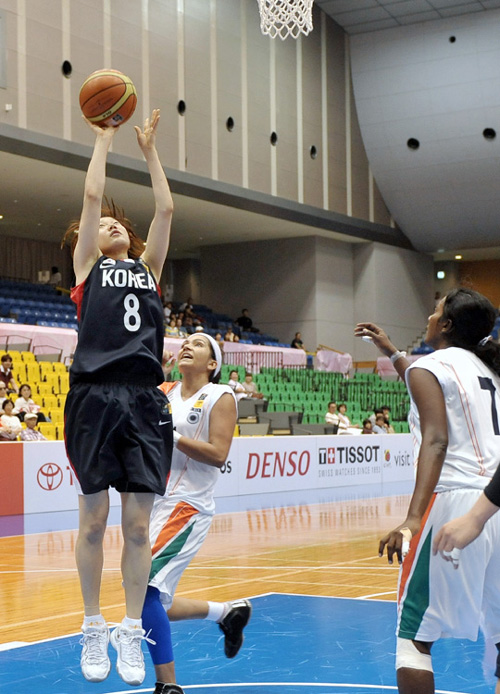 이날 한국의 승리를 이끈 주역은 강아정(17점)과 김단비(13점). 여기에 김정은(10점)이 연일 맹활약을 펼쳤다. 리바운드의 우세를 잘 활용해 인도를 공략했다. 인도도 팀 내 최장신(185cm)인 기투 안나 조세(27점)를 앞세워 분전했지만, 원맨팀의 한계가 뚜렷했다.