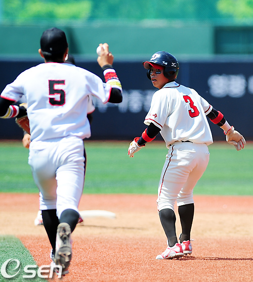 반격에 나선 마산고는 3회 2사 2루에서 전현식의 좌전 적시타로 경기에 균형을 맞췄다. 이어 4회 상대 실책으로 출루한 김민수가 2루를 훔친 뒤 박재석의 중전 적시타 때 홈을 밟아 경기를 뒤집었다.